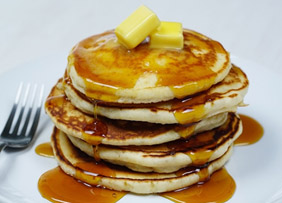 A plate of pancakes with syrup is a total carb explosion and one of the absolute worst breakfast choices for someone with diabetes. Most pancakes are jumbo-sized and made with junky white flour, so downing a stack of three large flapjacks can be the equivalent of eating seven slices of white bread! Of course, the toppings make matters worse. This starch-and-sugar overload will send your blood sugars into a tailspin (not to mention, help you pack on the pounds).